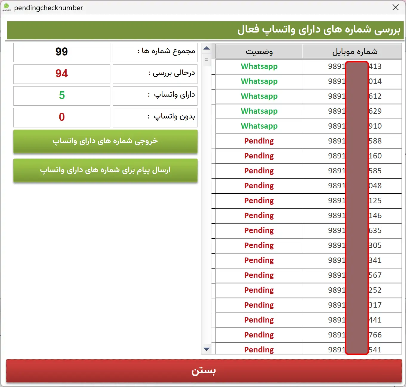 - بررسی شماره ها و تفکیک شماره های دارای واتساپ فعال با سرعت بالا